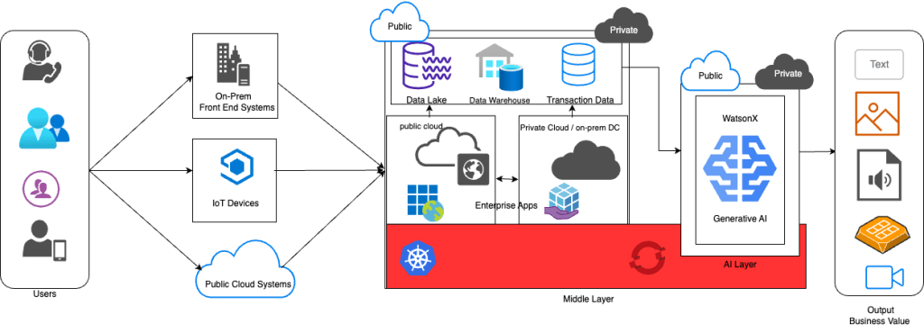 - Deployment and Integration: Once trained, generative models are deployed into production environments. This involves integrating them with existing systems and workflows. For enterprises, this means incorporating generative AI into their software solutions, data pipelines, and business processes.