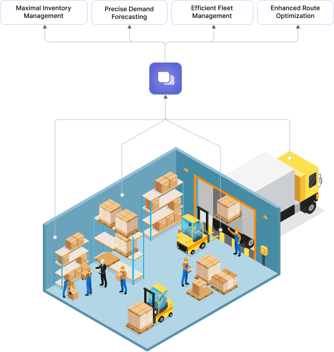 Warehouses are the backbone of the logistics industry, and efficient warehouse management is key to ensuring smooth operations. Generative AI in logistics can significantly enhance inventory management and warehouse optimization by analyzing large amounts of data and generating better storage strategies.